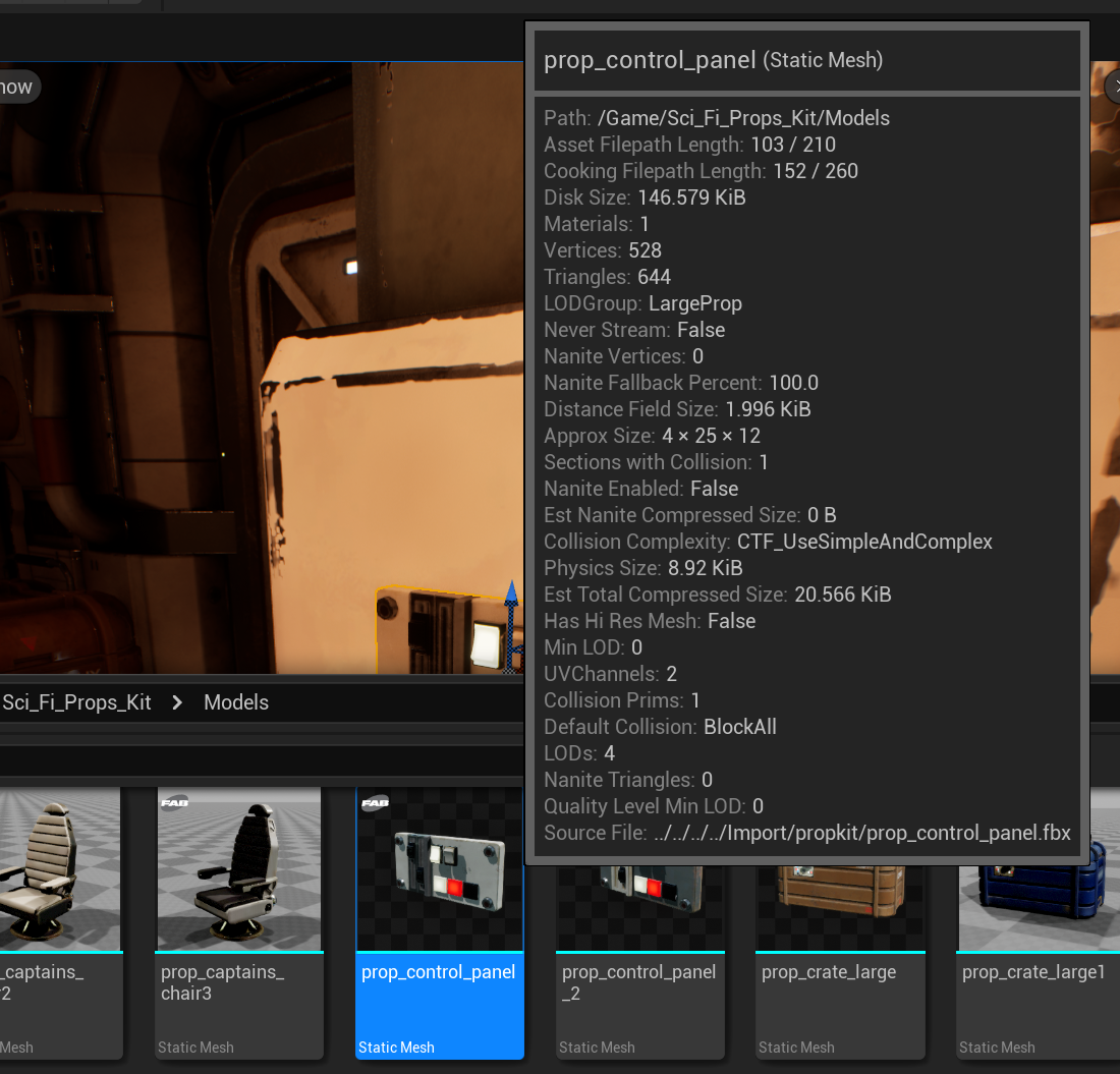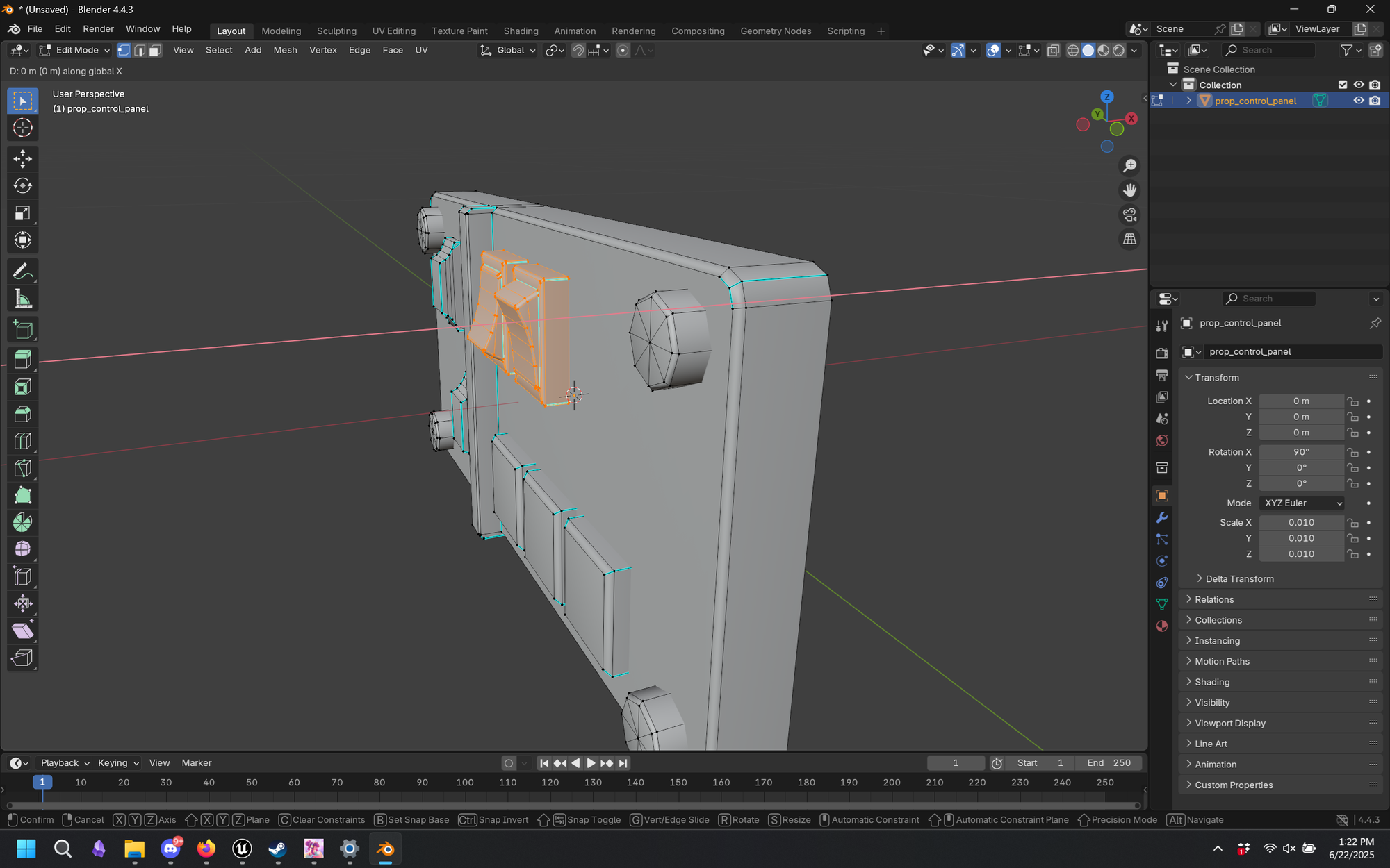 I exported the selected mesh back to the import directory as control_panel_modified.fbx. I then imported it back into Unreal, and set the material on the new mesh. - Replace in scene